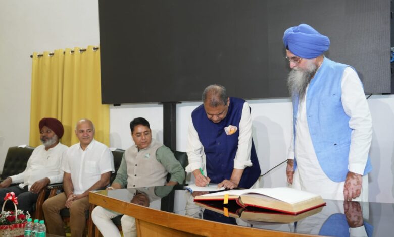 ਚੰਡੀਗੜ੍ਹ 28 ਜੂਨ (ਨਵਜੋਤ ਬਾਵਾ) –ਪੰਜਾਬ ਵਿਧਾਨ ਸਭਾ ਦੇ ਸਪੀਕਰ ਸ. ਕੁਲਤਾਰ ਸਿੰਘ ਸੰਧਵਾਂ ਨੇ ਅੱਜ ਪੰਜਾਬ ਵਿਧਾਨ ਸਭਾ ਸਕੱਤਰੇਤ ਵਿਖੇ ਦਿੱਲੀ ਦੇ ਸਾਬਕਾ ਉਪ ਮੁੱਖ ਮੰਤਰੀ ਮਨੀਸ਼ ਸਿਸੋਦੀਆ, ਕੈਬਨਿਟ ਮੰਤਰੀ ਅਮਨ ਅਰੋੜਾ, ਕੈਬਨਿਟ ਮੰਤਰੀ ਹਰਪਾਲ ਸਿੰਘ ਚੀਮਾ ਅਤੇ ਵਿਧਾਇਕ ਬੁੱਧ ਰਾਮ ਦੀ ਮੌਜੂਦਗੀ ਵਿੱਚ ਨਵੇਂ ਚੁਣੇ ਗਏ ਵਿਧਾਇਕ ਸੰਜੀਵ ਅਰੋੜਾ ਨੂੰ ਸਹੁੰ ਚੁਕਾਈ। ਸਪੀਕਰ ਨੇ ਸੰਜੀਵ ਅਰੋੜਾ ਨੂੰ ਪੰਜਾਬ ਵਿਧਾਨ ਸਭਾ ਦਾ ਸਾਹਿਤ ਅਤੇ ਆਈ-ਪੈਡ ਭੇਟ ਕੀਤਾ। ਅਰੋੜਾ ਨੇ ਸਹੁੰ ਚੁੱਕੀ ਕਿ ਉਹ ਕਾਨੂੰਨ ਦੁਆਰਾ ਸਥਾਪਿਤ ਭਾਰਤ ਦੇ ਸੰਵਿਧਾਨ ਪ੍ਰਤੀ ਸੱਚੀ ਸ਼ਰਧਾ ਅਤੇ ਵਫ਼ਾਦਾਰੀ ਰੱਖਣਗੇ। ਉਹ ਭਾਰਤ ਦੀ ਪ੍ਰਭੂਸੱਤਾ ਅਤੇ ਅਖੰਡਤਾ ਨੂੰ ਕਾਇਮ ਰੱਖਣਗੇ ਅਤੇ ਉਨ੍ਹਾਂ ਨੂੰ ਸੌਂਪੇ ਗਏ ਫਰਜ਼ਾਂ ਨੂੰ ਵਫ਼ਾਦਾਰੀ ਨਾਲ ਨਿਭਾਉਣਗੇ। ਸੰਜੀਵ ਅਰੋੜਾ ਨੇ ਕਿਹਾ ਕਿ ਉਹ ਆਮ ਆਦਮੀ ਪਾਰਟੀ ਦੀ ਸੀਨੀਅਰ ਲੀਡਰਸ਼ਿਪ ਤੋਂ ਮਾਰਗਦਰਸ਼ਨ ਲੈਣਗੇ ਅਤੇ ਆਪਣੇ ਹਲਕੇ ਦੀ ਭਲਾਈ ਲਈ ਕੋਈ ਕਸਰ ਬਾਕੀ ਨਹੀਂ ਛੱਡਣਗੇ।